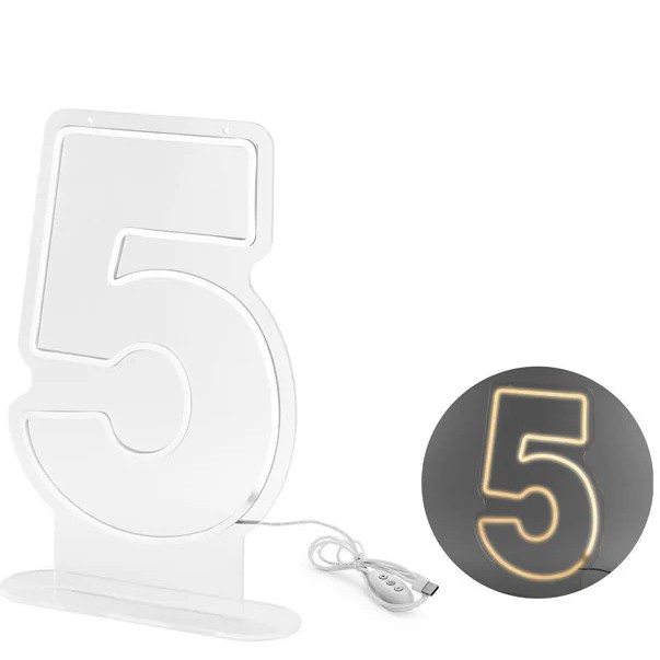 Neonové LED číslo 5 je elegantní a stylové řešení osvětlení, které je ideální pro každou příležitost. Ať už se použije na narozeninové oslavy, svatby, výročí nebo jiné události, tento neonový nápis překvapí a potěší přátele a blízké.