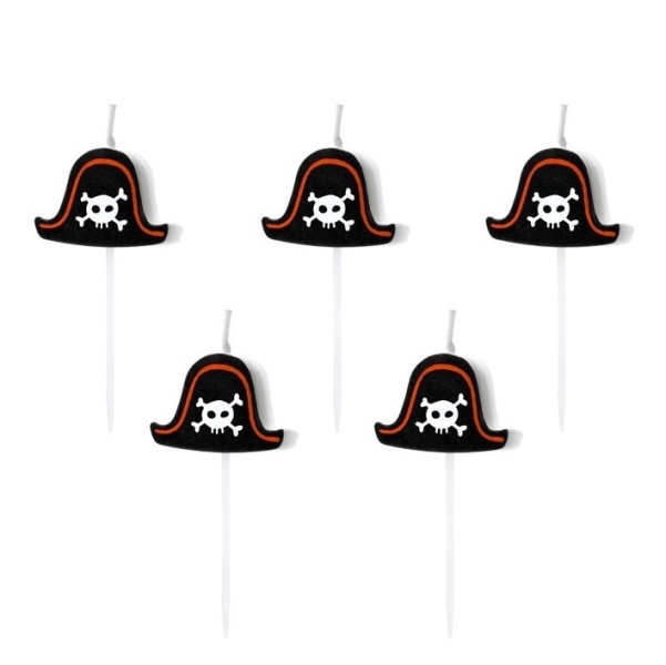 Pirátské narozeninové svíčky ve tvaru klobouku by neměly chybět na žádném narozeninovém dortu pro malé i velké piráty.