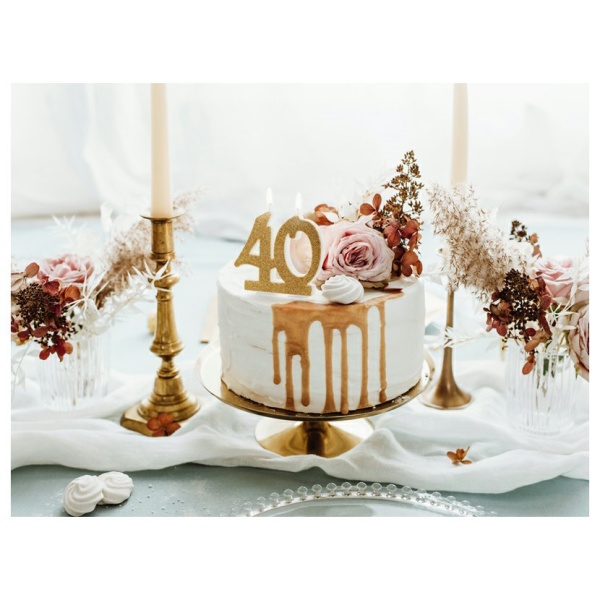 Svíčka na dort ve zlaté barvě se třpytkami k jubilejním 40. narozeninám by neměla chybět na žádném