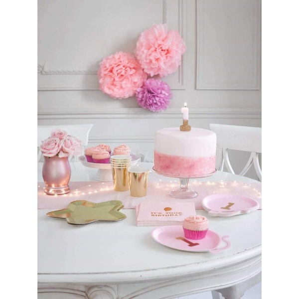 Oslavte 1. narozeniny vaší holčičky krásným dortem, na kterém nesmí chybět tato růžová svíčka číslo 1 se zlatými glitry ve spodní části.