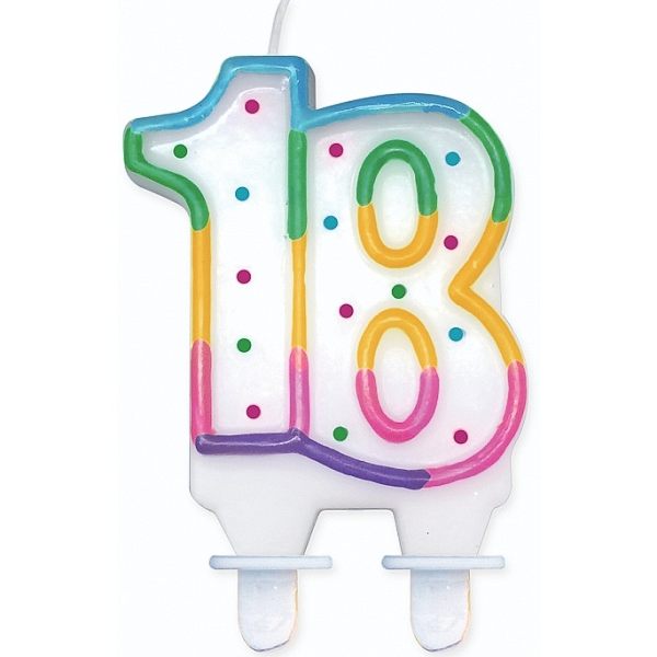 | Svíčka dortová s číslem 18 Výška 8 cm, duhové puntíky Při oslavě vašich plnoletých narozenin nezapomeňte na … |