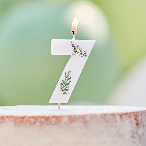 Použijte tuto krásnou narozeninovou svíčku s číslem 7 se zelenými větvičkami na svůj narozeninový dort a nezapomeňte si při jejím sfoukáváním něco přát.