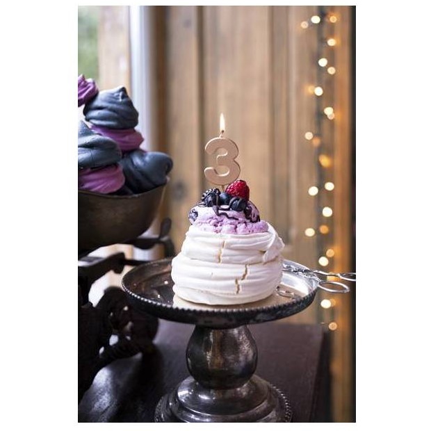 Dodejte každé oslavě zvláštní jiskru s touto narozeninovou svíčkou ve tvaru číslice 3, vyrobenou v elegantním růžovém zlatě.