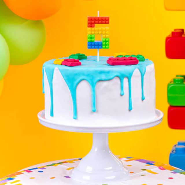 Dortová svíčka číslo 6 z kolekce Blocks jenepostradatelným prvkem dortové dekorace na narozeninové oslavě fanouška Lega.