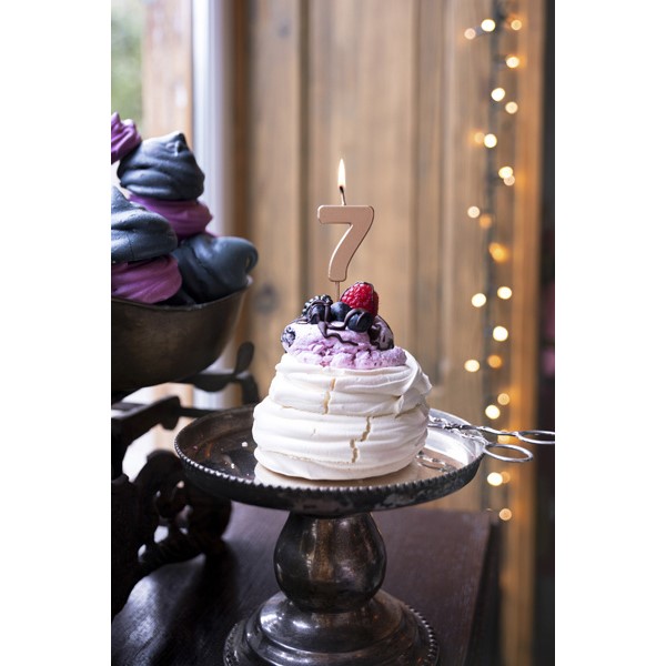 Dodejte každé oslavě zvláštní jiskru s touto narozeninovou svíčkou ve tvaru číslice 7, vyrobenou v elegantním růžovém zlatě.