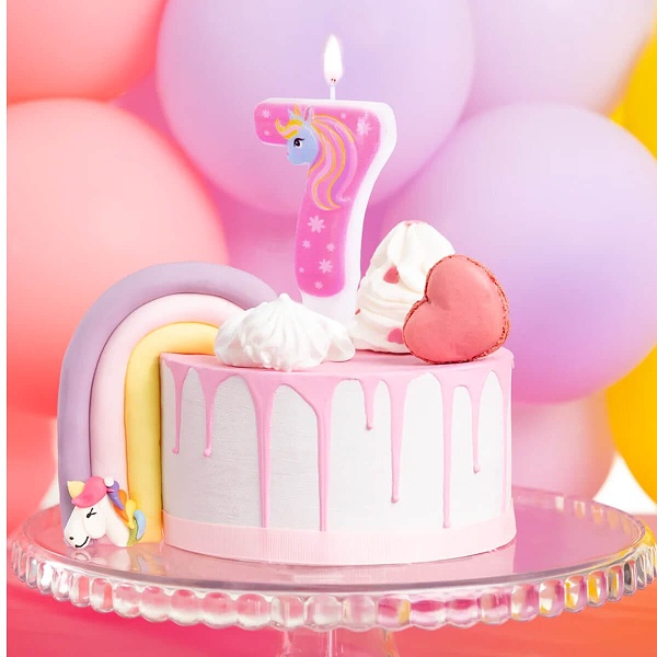Tato svíčka je ideální volbou pro oslavu narozenin v tématu Jednorožce. Jedinečný design svíčky dodává zábavný a magický nádech každému narozeninovému dortu.
