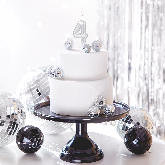 Svíčka na dort číslo 4 lesklá stříbrná