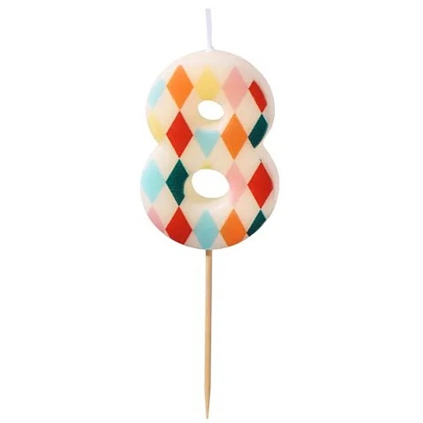 | Narozeninová svíčka na dort číslo 8 Svíčka na dort je s barevnými kosočtverci a ideální na narozeninovou oslavu v tématu … |