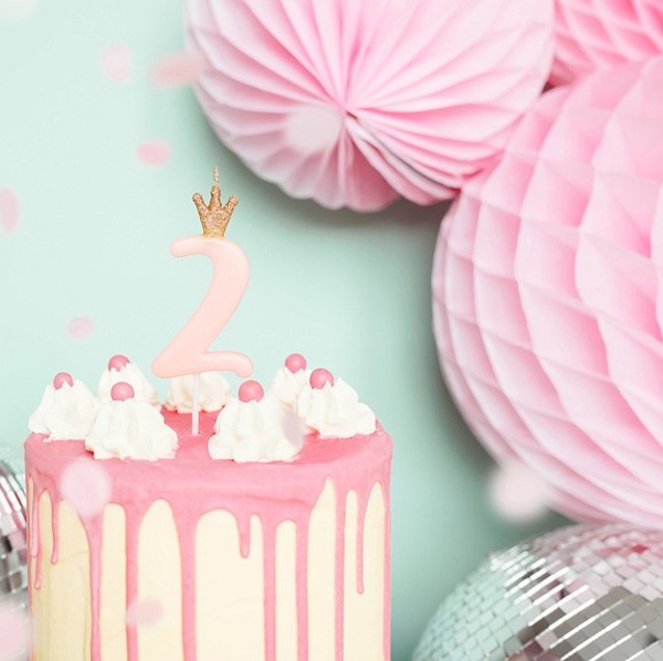 Tato narozeninová svíčka na dort číslo 2 ve světle růžové barvě se zlatou korunkou vám na něm udělá velkou parádu.