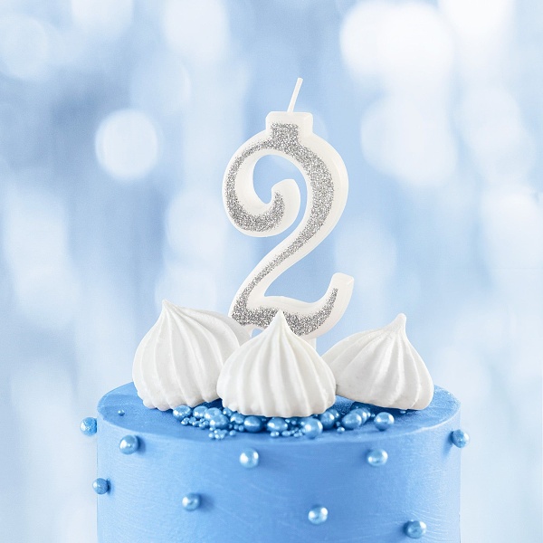 Svíčka na dort číslo 2 se stříbrnými třpytkami