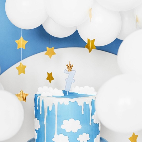 Tato narozeninová svíčka na dort číslo 7 ve světle modré barvě se zlatou korunkou vám na něm udělá velkou parádu.
