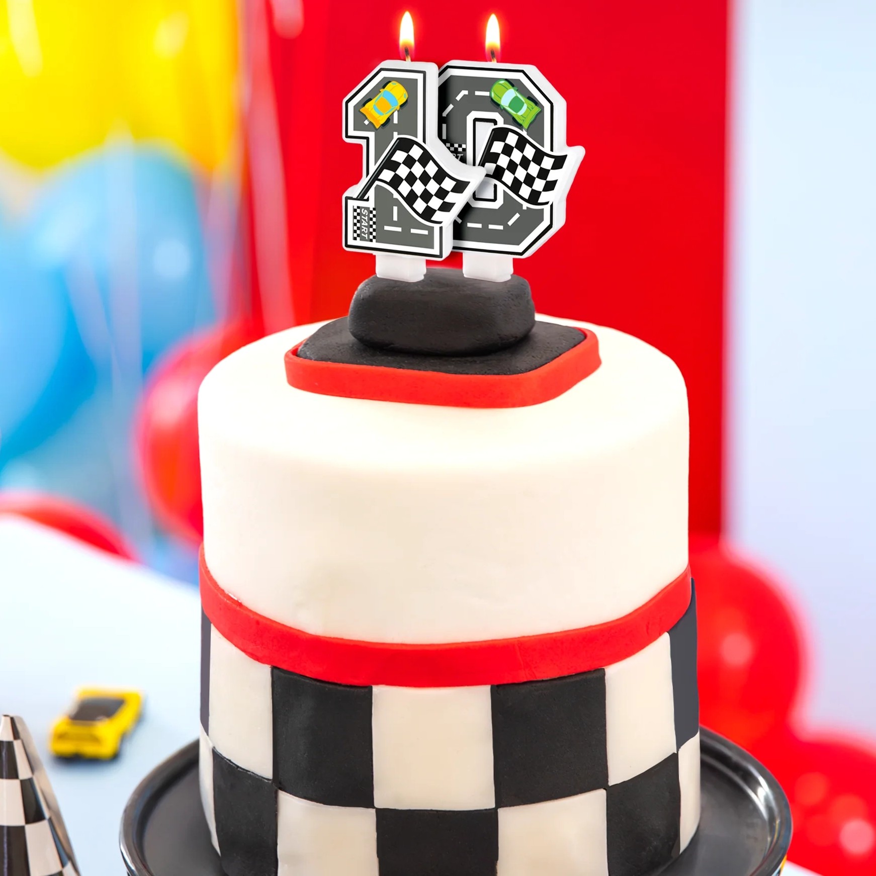 Svíčka na dort číslo 0 závodní auto je ideální pro nebo desáté (s přidáním čísla 1) narozeniny malého závodníka .