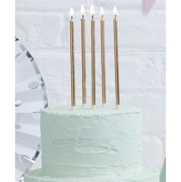Narozeninové extra dlouhé svíčky zlaté barvy vám určitě nesmí chybět na narozeninovém dortu.