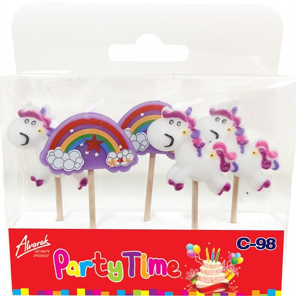 Dortové svíčky s moderním a trendy designem, které nesmí chybět jako dekorace na žádném narozeninovém dortu na tématické párty s Jednorožcem.