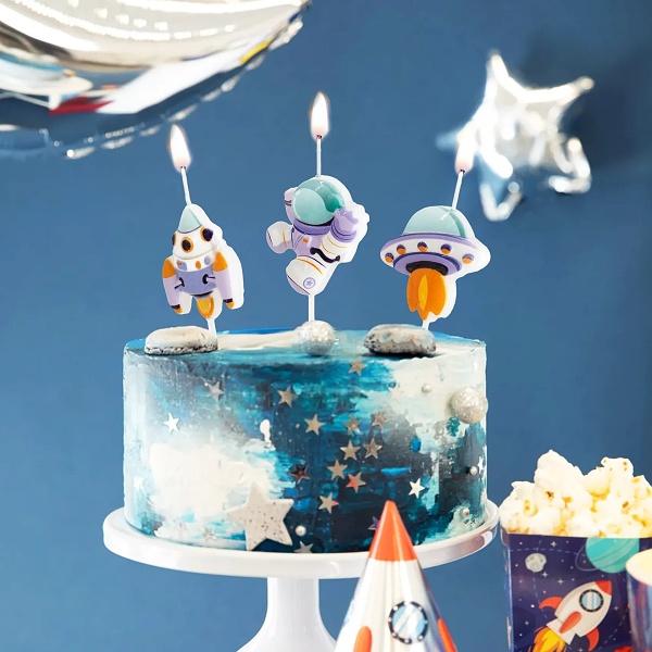 Krásné narozeninové svíčky na dort či cupcake potěší každého milovníka vesmíru.