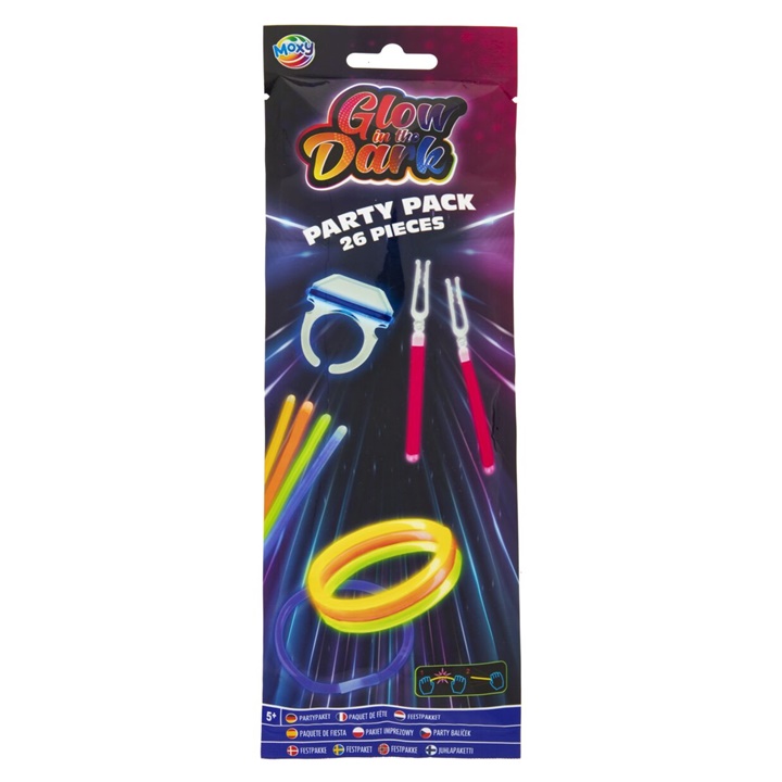 Obsah balení: sada svítících tyčinek a doplňků (náramky, brýle,náhrdelníky aj.) konektory pro spojování tyčinek, různé barevné varianty.