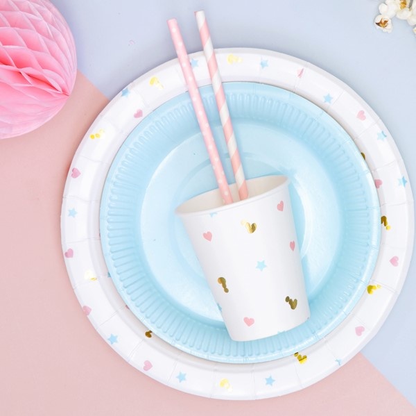 Nejemočnější rodinná párty je ta, kde odhalíte pohlaví svého miminka. Tuto oslavu můžete znát pod názvem Gender Reveal party. Nejdojemnější překvapení zda se narodí chlapec nebo holčička je nádherný rituál. Pro tuto stylovou oslavu máme v nabídce symbolické dekorace i krásné papírové ekologické kelímky pro stolování, které snadno zkombinujete i s dalšími doplňky. Kelímkyjsou v pastelových barvách a nastávající mamince ušetří spoustu času s mytím nádobí po oslavě.