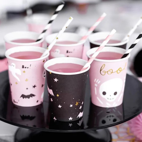 Papírové kelímky Boo s motivem dětského Halloweenu.