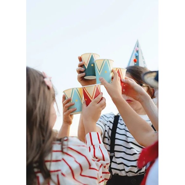 Papírové jednorázové kelímky Cirkus v mixu barev jsou to pravé pro tématickou dětskou Cirkus párty.