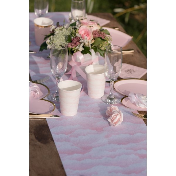 Kelímky mají potisk světle růžových mraků. Svým jemným dekorem jsou vhodné na jakoukoliv tématickou párty.