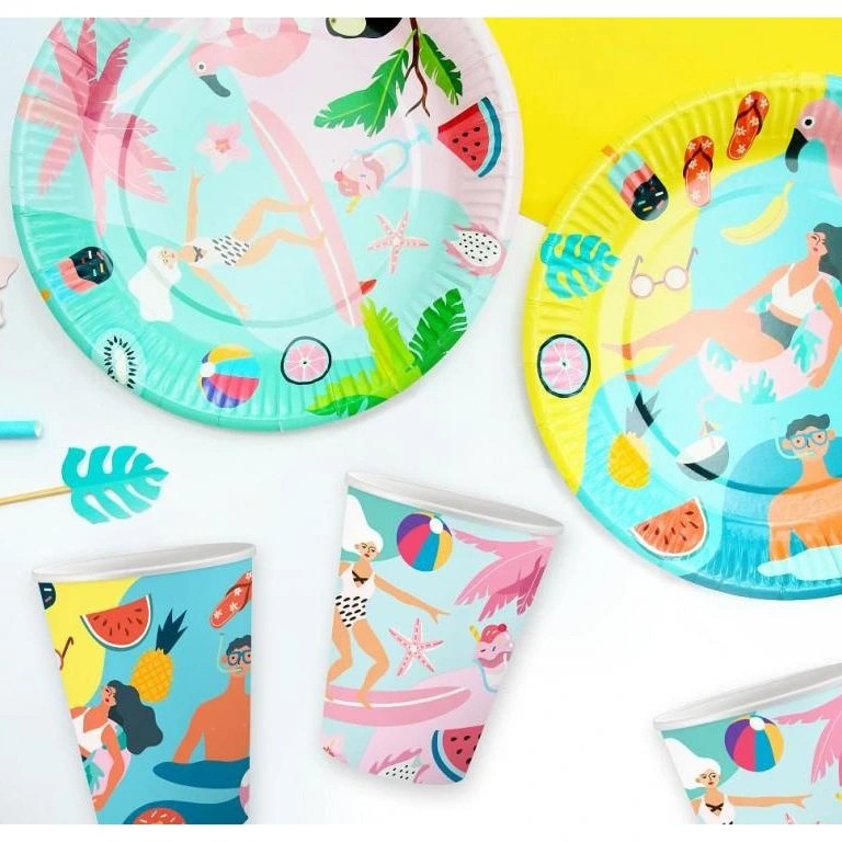 Krásné a barevně zdobené kelímky Summer Beach vám skvěle ozdobí letní prostřený stůl.