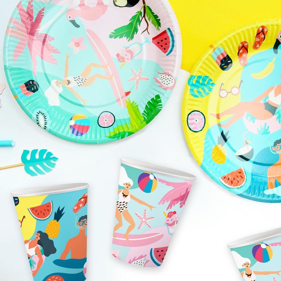 Papírové jednorázové kelímky s letní, plážovou nebo prázdninovou tématikou.