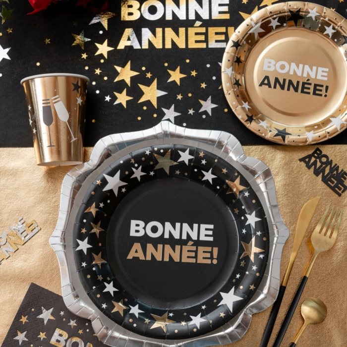 Připijte si na Nový rok 2026 z těchto papírových kelímků na šampaňské „Bonne Année“.