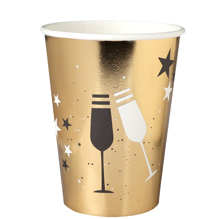 Kelímky papírové zlaté s potiskem skleniček šampaňského šampaňského