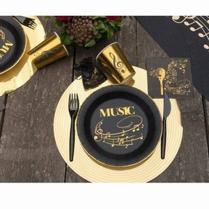 Kelímky zlaté Music s houslovým klíčem a černými notami jsou bezva doplněk na různé hudební párty, rock party, silvestrovskou party