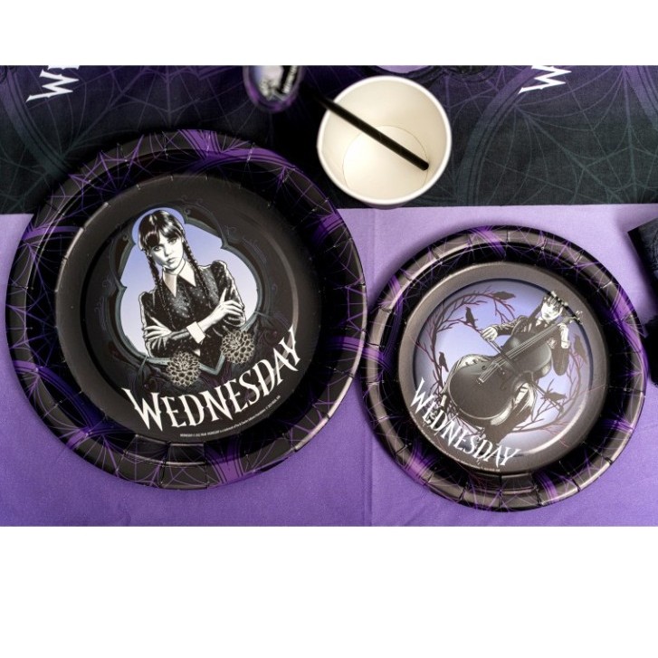 V naší široké nabídce také nalezenete k tomuto tématu Wednesday kostýmy, paruky a další doplňky jako jsou talířky, brčka, ubrousky a jiné dekorace.