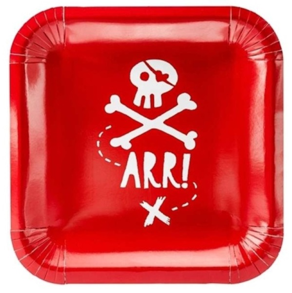 Źádná pořádná oslava či narozeniny v "Pirátském stylu" se neobejde bez těchto praktických papírových talířů v sytě červené barvě s bílou lebkou.