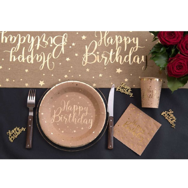 | Sada papírových narozeninových talířů Kraftové papírové talíře jsou zdobené zlatým nápisem "Happy Birthday" , … |