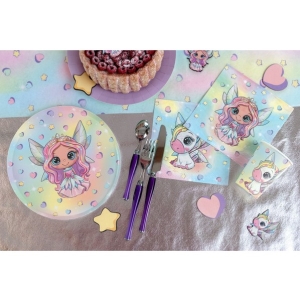 Praktické a jednorázové papírové talíře Duhová víla v jemných pastelových barvách jsou důležitý doplněk stolní výzdoby pro malé slečny, které si oblíbily kouzelné víly a bájné jednorožce.
