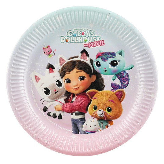 Papírové talířky Gabby´s Dollhouse jsou ten pravý doplněk barevného stolování na narozeninovou párty pro malé