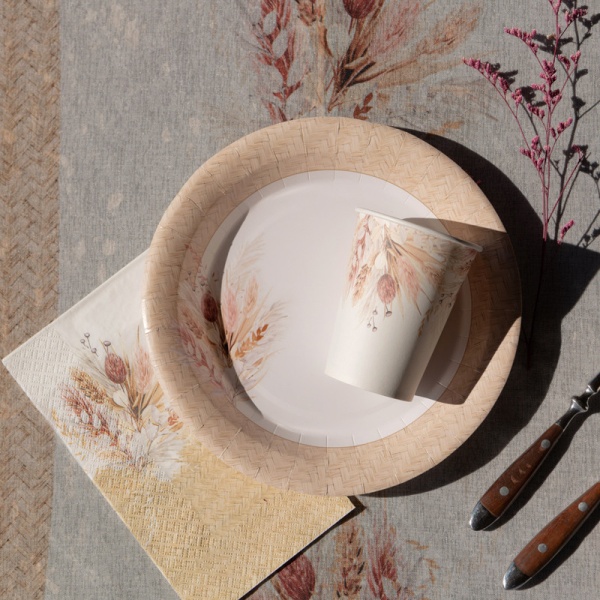 Pro krásnou výzdobu stolu vašich letních večírků s tématikou venkovské přírody nebo trendy svatby se rozhodněte pro tyto papírové talíře v romantickém stylu.