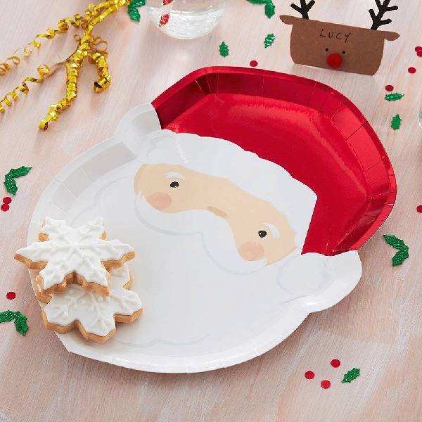 Ozdobte vás štědrovečerní stůl o letošních Vánocích stylově s těmito zábavnými talířky ve tvaru Santy, na kterých budete podávat vánoční lahůdky a ocení je především děti.
