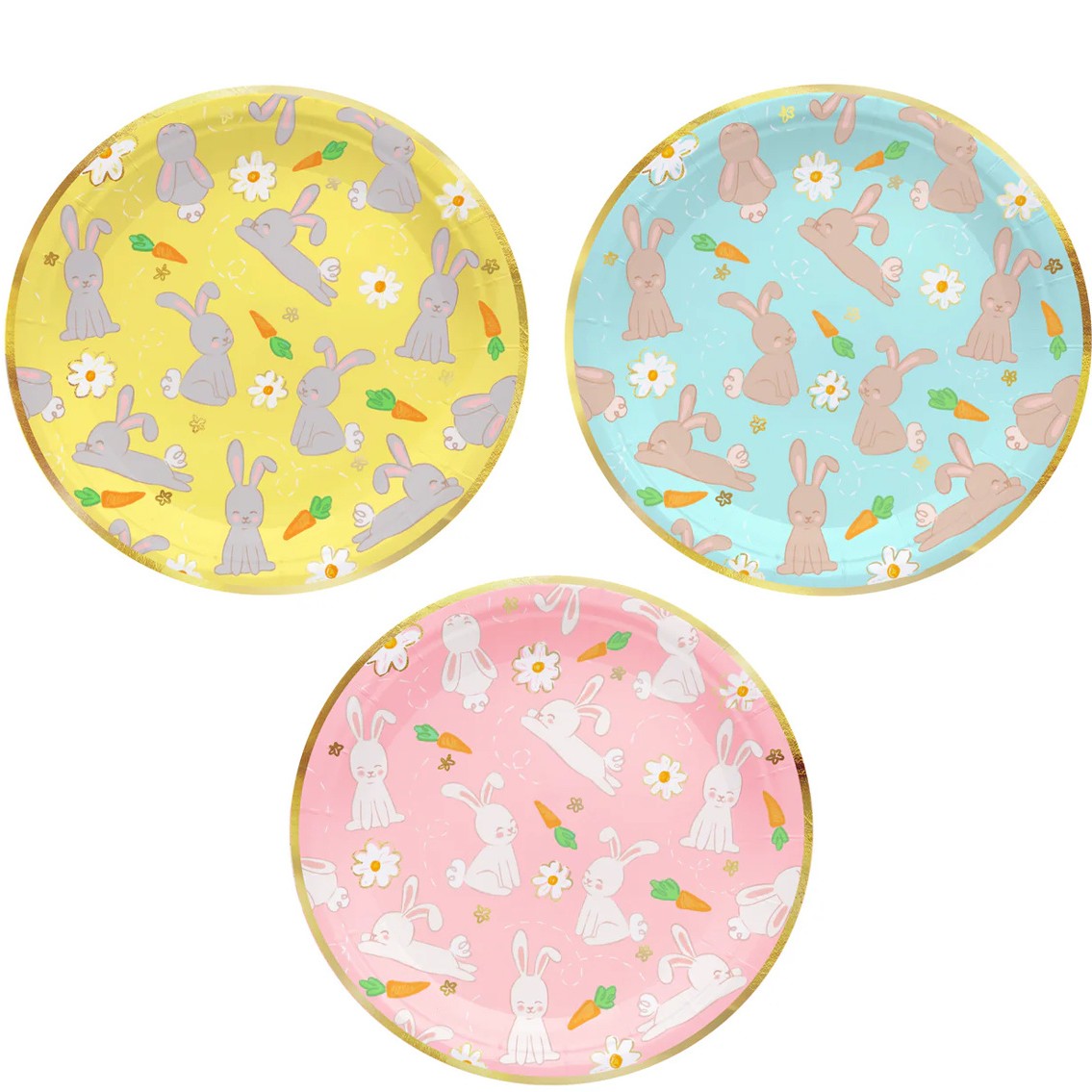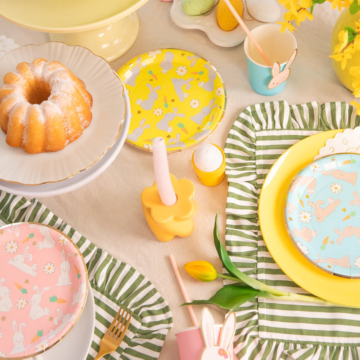 Papírové jednorázové talířky se zajíčky.