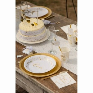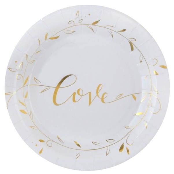 Chcete sdělit svému blízkému tímto originálním způsobem, že ho máte rádi? Pak si vyzdobte váš stůl těmito bílými talířemi se zlatými lístečky a nápisem Love. A pokud budete kombinovat tyto láskyplné talíře s dalšími doplňky ve zlaté barvě, bude výzdoba vašeho slavnostního stolu nepřehlédnutelná.