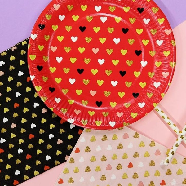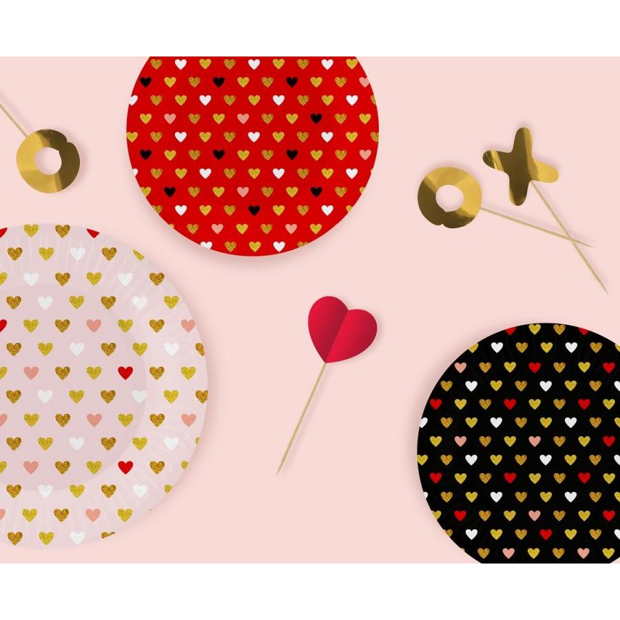 Papírové červené talířky se srdíčky z kolekce XoXo.