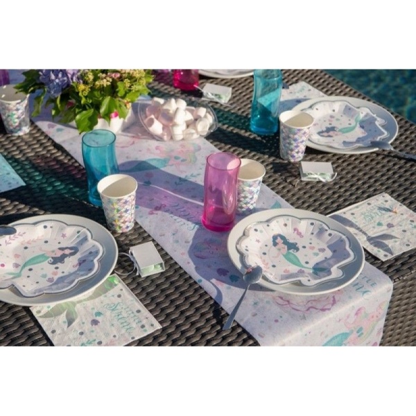 Krásné papírové talíře ve tvaru mušle s mořskou pannou