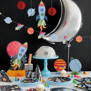 Papírové ekologické talíře Vesmír s obrázky raket a planet budou tou správnou volbou na klučičí vesmírnou párty.