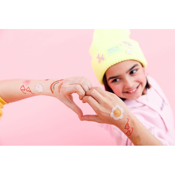 Dočasné smývatelné tetování Kopretina mix bude skvělým doplňkem a zábavou pro děvčata na narozeninové nebo tématické oslavě.