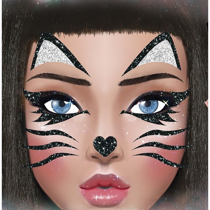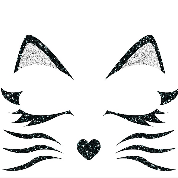 Nalepovací tetovačky na obličej ve stylu stříbrno-černé kočky se třpytivým efektem.