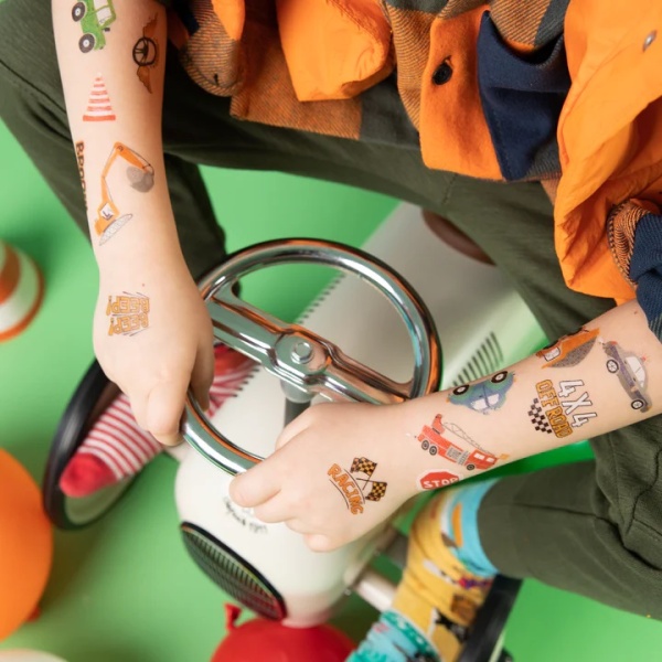 Skvělá sada omyvatelných tetování, která uspokojí každého malého fanouška motorových vozidel a stavebních prací.,