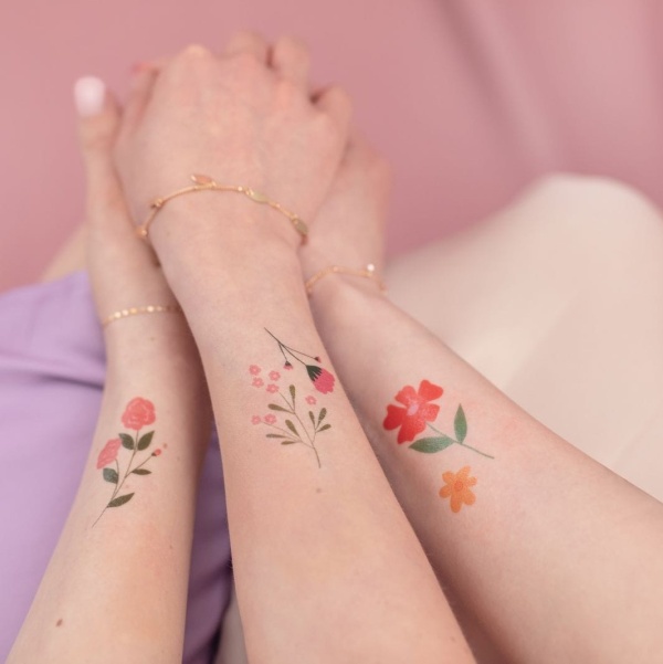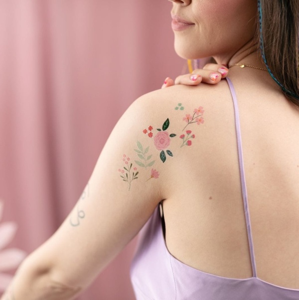 Omyvatelné barevné květinové tetování