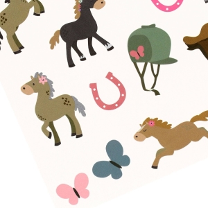 Sada omyvatelných tetování s krásnými koníčky a jinými ozdobami malé účastníky narozeninové oslavy jistě zaujme a povzbudí k jejich společné zábavě.
