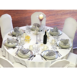 Bílý kulatý ubrus je klasický dekorativní prvek, který dokáže dodat eleganci a styl každému prostoru. Je vhodný pro zvláštní příležitosti, jako jsou slavnostní večeře nebo svatební hostiny.