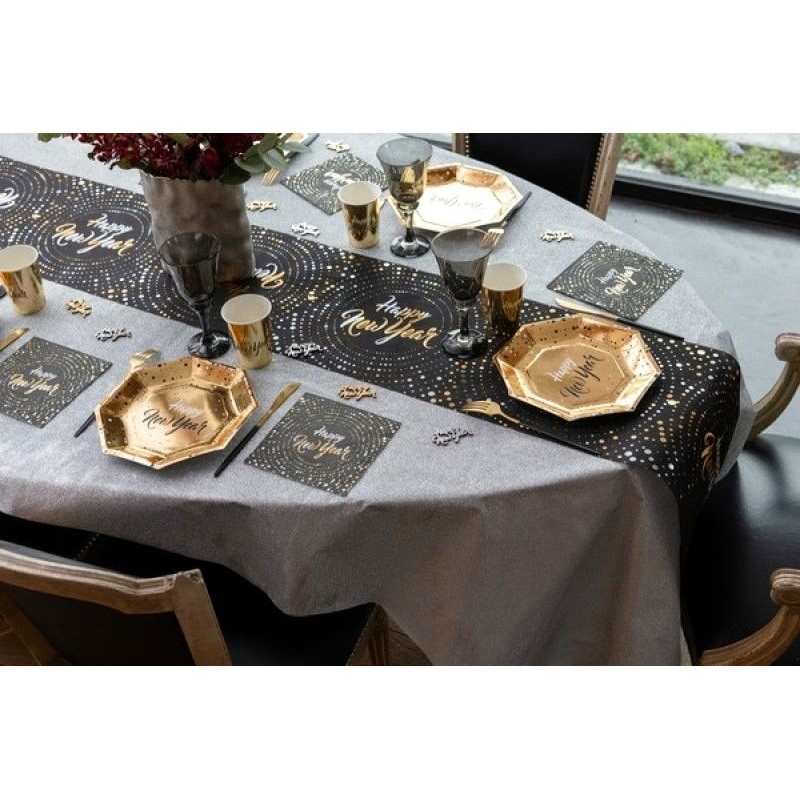 Stříbrný sváteční ubrus je v roli, jeho velikost je 120 cm x 3 metry.