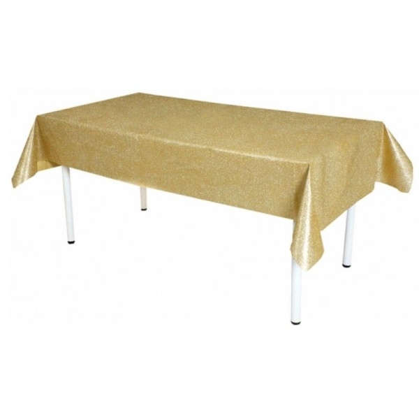 Zlatý sváteční ubrus je v roli, jeho velikost je 120 cm x 3 metry.