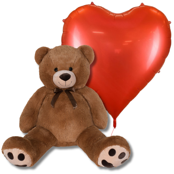 Set obsahuje: Velkého plyšového medvídka (120 cm), fóliový balónek XXL ve tvaru srdce (136x129 cm) a těžítko na balónky .